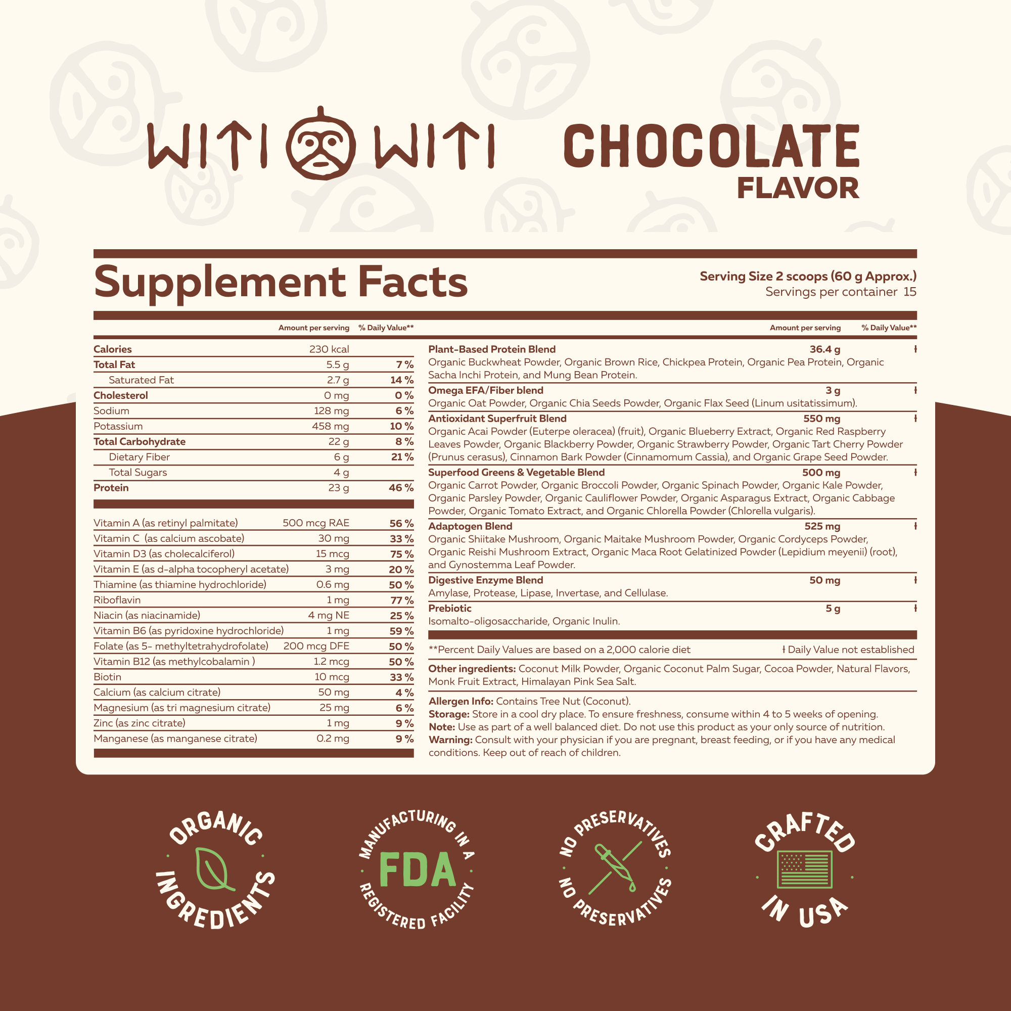 Finding vegan protein with all 9 essential amino acids is rare. Witi Witiโs complete protein formula ensures you get these vital nutrients that your body can't produce on its own. It's a 23 grams plant-based protein powerhouse!